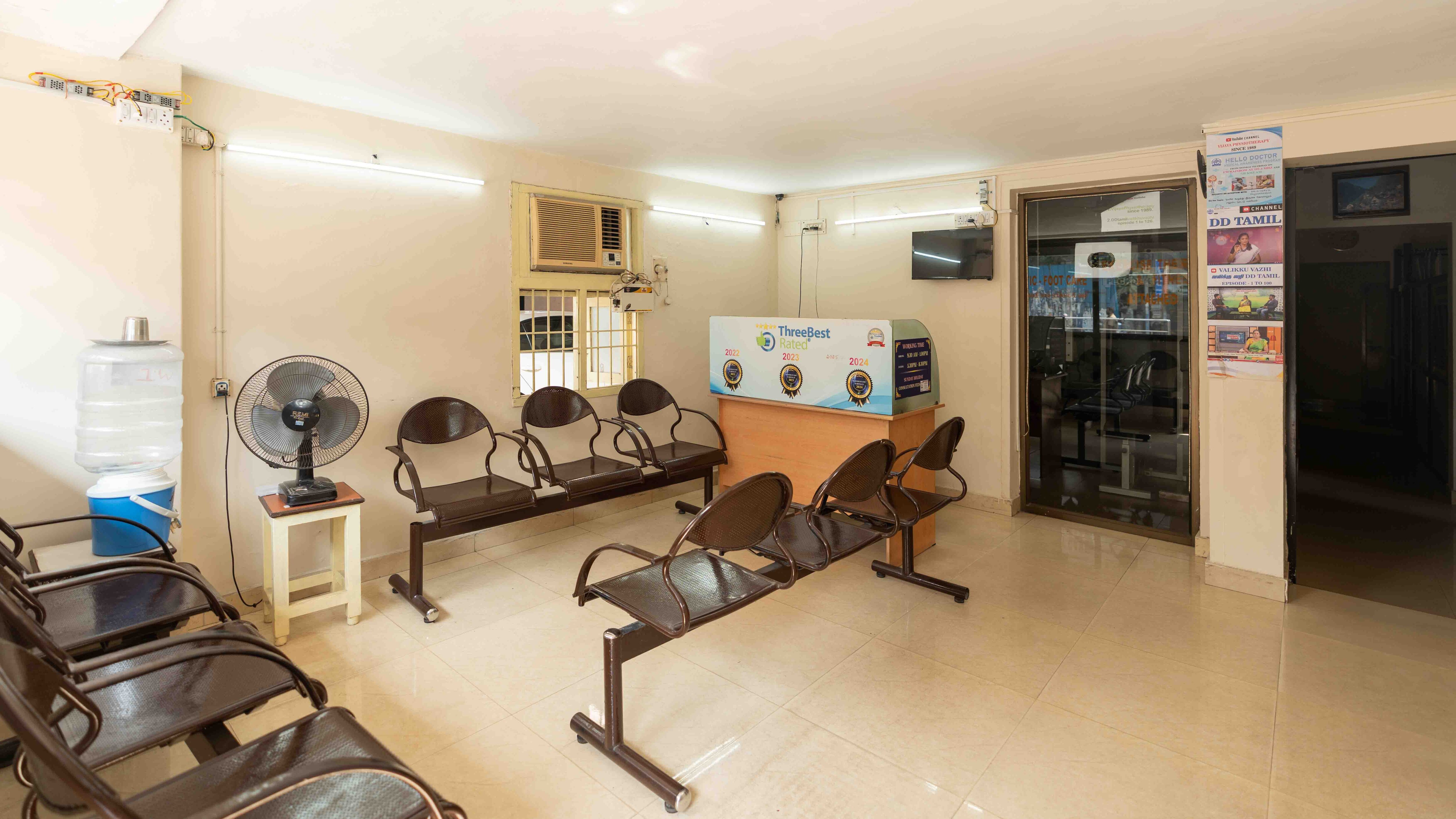 Vijaya Physiotherapy Clinic (Since 1989) - NO MEDICINE, NO SURGERY For over three decades, Vijaya Physiotherapy Clinic has been dedicated to one clear belief: true healing comes from correcting the root cause—not masking pain. Since 1989, we have successfully treated over 2.4 lakh patients, earning the trust of families across Chennai for conditions such as disc bulge, knee arthritis, chronic back pain, neck pain, nerve conditions, and post-surgical rehabilitation. Our clinic was built on experience, ethics, and outcome-based care—long before physiotherapy became commercial or equipment-driven alone. Every patient is treated through a structured, step-by-step recovery system: 1. Detailed Physical Assessment Thorough clinical evaluation to identify the real cause—not just the painful area. 2. Blood Test–Based Vitamin Deficiency Correction Correction of deficiencies (like Vitamin D, B12) that often delay healing and cause recurring pain. 3. Advanced Physiotherapy Equipment Modern modalities used judiciously to support tissue healing and nerve recovery. 4. Strength Training for Permanent Results Targeted strengthening to prevent relapse and restore confidence in movement. 5. Yoga for Stress, Flexibility & Mind–Body Balance Controlled therapeutic yoga to support recovery, posture, and mental well-being. 6. Easy Diet Plan – No Separate Cooking Required Simple, practical food guidance that fits into daily home routines.